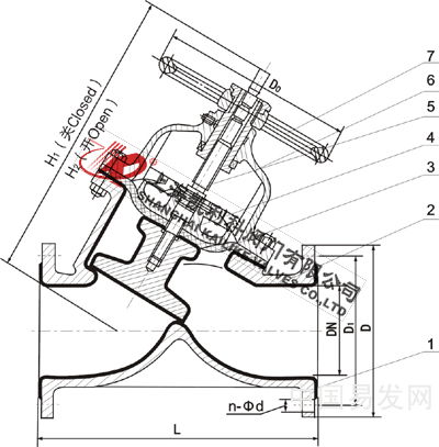 4、閥體與蓋被中間隔膜隔開(kāi),使得隔膜上方的閥蓋,閥桿零件不受介質(zhì)侵蝕;