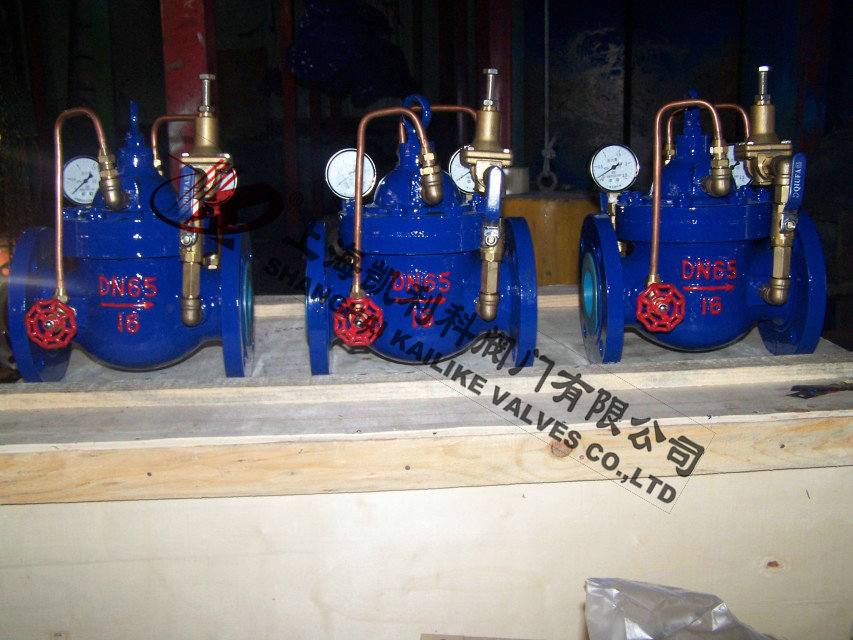 900X消防緊急關閉閥當出口壓力低于導閥設定的壓力時,導閥此時處于開通狀態,主閥上腔壓力與主閥出口壓力相等,進口與吃口存在壓差,水流經閥口出口流出,當消防泵氣泵時,或變平泵壓力升高時,超過導閥設定壓力,由主閥進口向導閥管控制室壓力升高,作用在彈簧壓力增大,向下壓緊,帶動閥芯下移,使導閥關閉,此時主閥進口壓力通過節流閥補充到主閥閥蓋上腔,因閥瓣受到向下壓力大于向上推力,主閥關閉。值得注意的是,進口壓力小于設定壓力是,主閥處于開啟狀態,進口壓力大于設定壓力,閥瓣關閉。