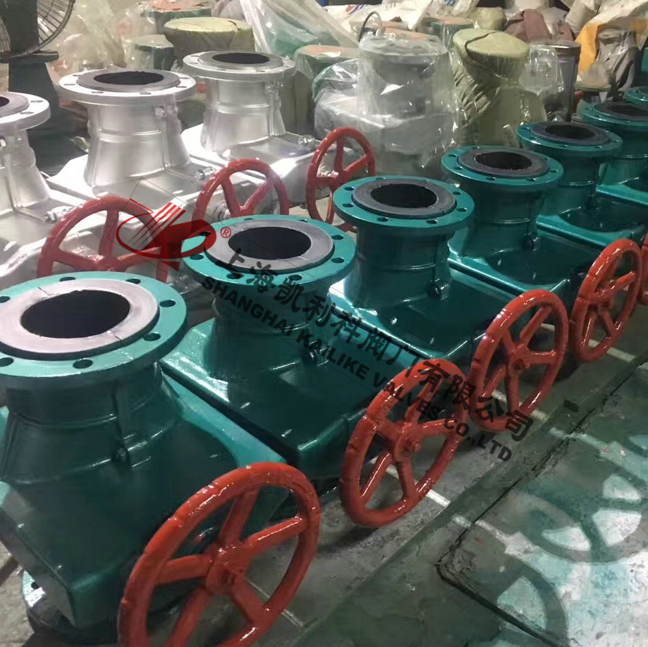 GJ41X鑄鐵管夾閥由上下鑄鐵、鋁合金、不銹鋼閥體,橡膠管套、大小閥桿閘板、上下導柱等零件組成。當順轉手輪時,使大小閥桿同時帶動上下茬板、壓縮管套、進行關閉,反之即行開啟。這樣,閘板在導柱之間上下往復完成閥門開閉工作,另因橡膠管套或承力小,所以在開閉時,操作人員旋轉輪時只要感到適量抵觸,均達到開閉極點。切勿盡力多人補助,禁用其他工具開閉。