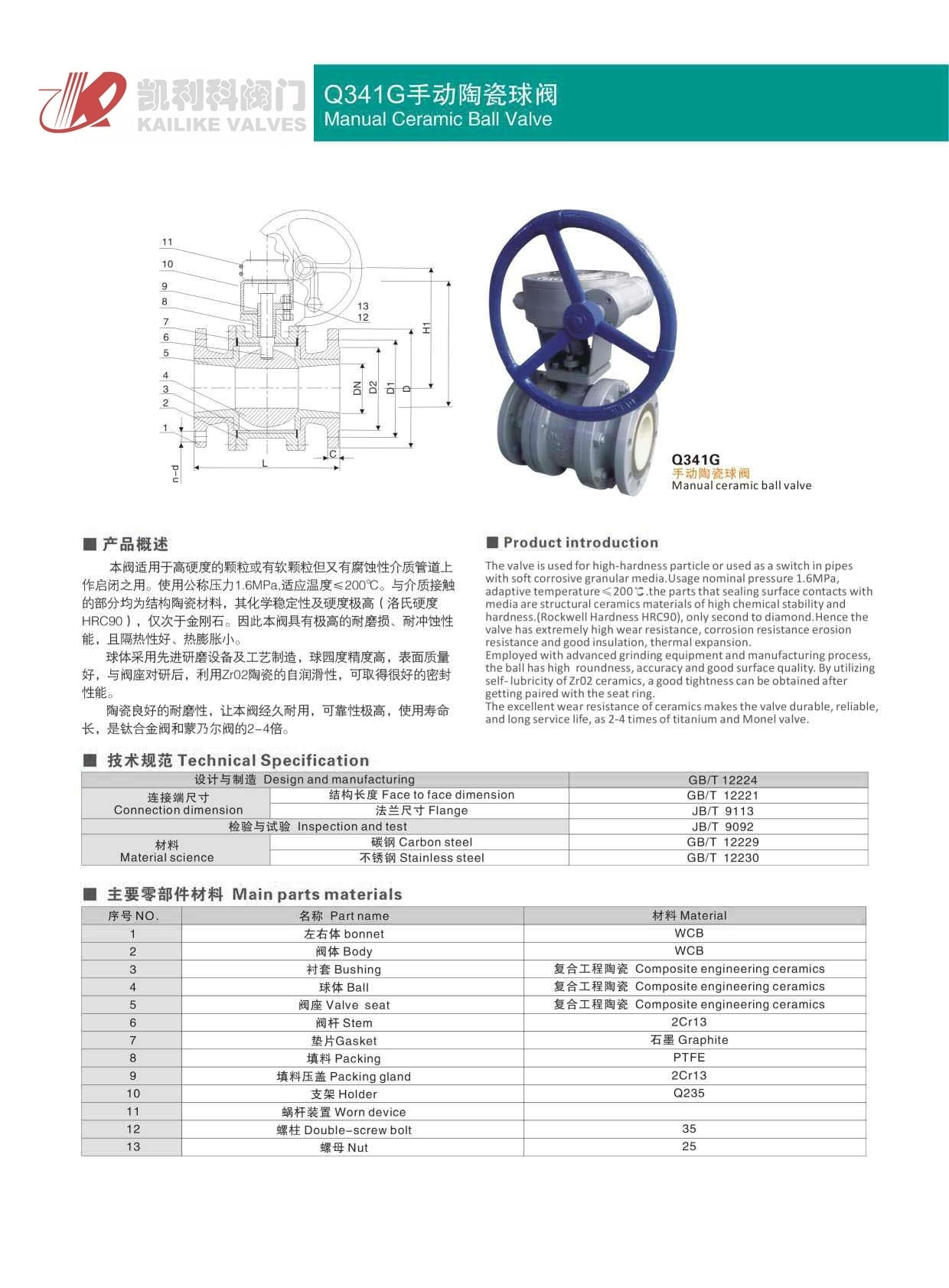 陶瓷球閥本閥適用于高硬度的顆粒或有軟顆粒但又有腐蝕性介質(zhì)管道上作啟閉之用。使用公稱壓力1.6MPa,適應(yīng)溫度≤200℃。與介質(zhì)接觸的部分均為結(jié)構(gòu)陶瓷材料,其化學(xué)穩(wěn)定性及硬度極高(洛氏硬度HRC90),僅次于金剛石。因此本閥具有極高的耐磨損、耐沖蝕性能,且隔熱性好、熱膨脹小。